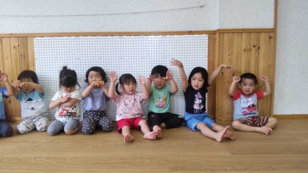 以前は「ぞうさんになってみよう」と声をかけるとしばらく固まっている子もいたのですが、みんな堂々と表現してくれるようになります。