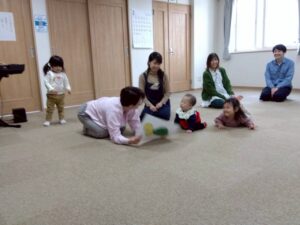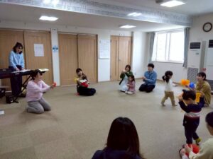 昨日、一回目のリトミック体験レッスンを宮の沢中央会館で行いました!