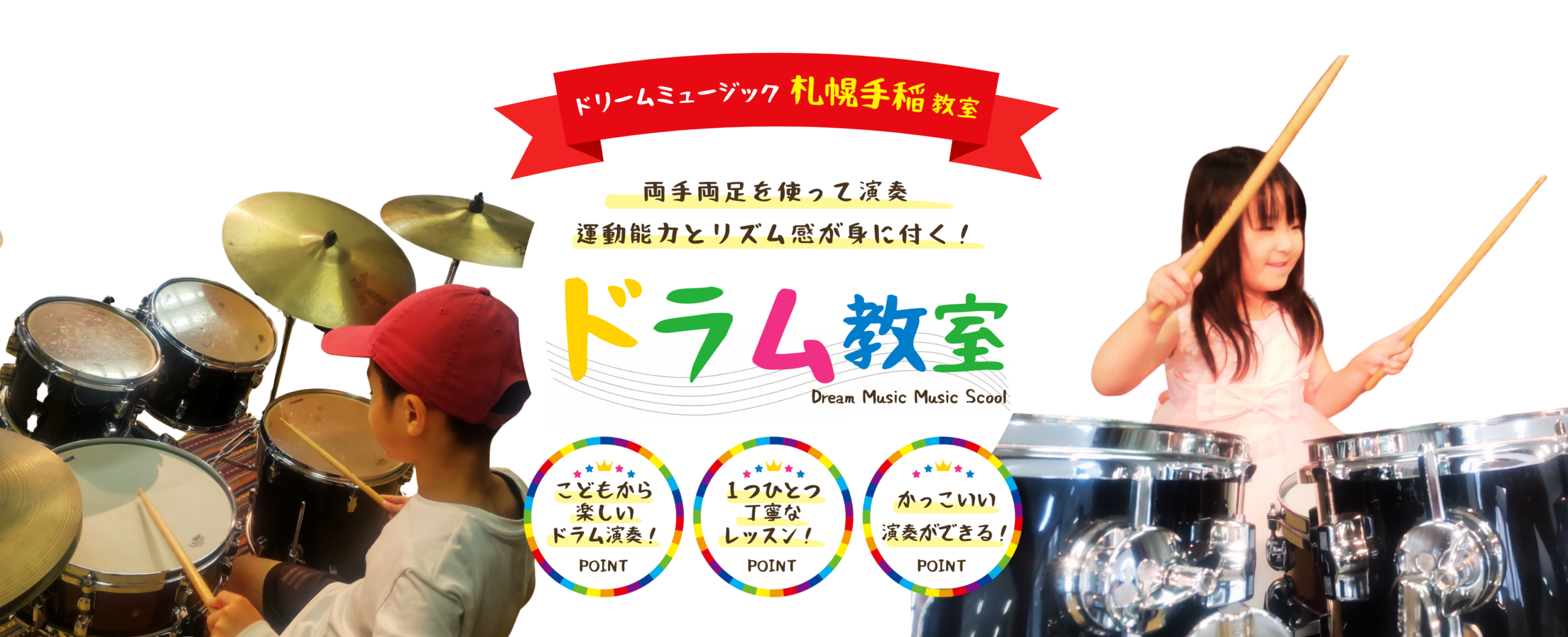 こどもからスタートできるポピュラー系楽器、講師が優しく楽しくドラムの楽しさをお伝えします。